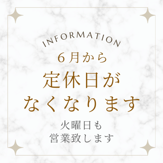 2024年6月から、火曜日の定休日をなくし不定休となります。