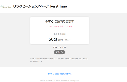「店舗空席NAVI」という機能を実装し、最短でご案内が可能な時間をリアルタイムにお知らせすることができるようになりました!!